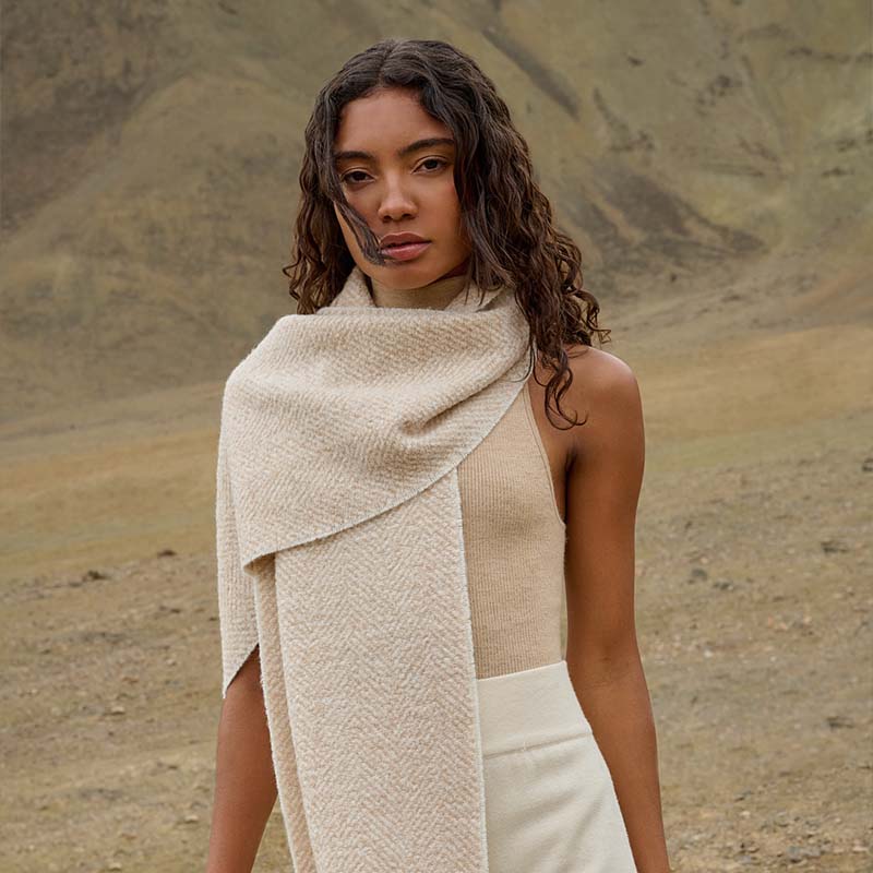 Alpakawolle ist hypoallergen, besonders weich und temperaturausgleichend. Sie hält warm, ohne zu überhitzen, und ist robuster als Schafwolle – perfekt für nachhaltige Premium-Mode.
